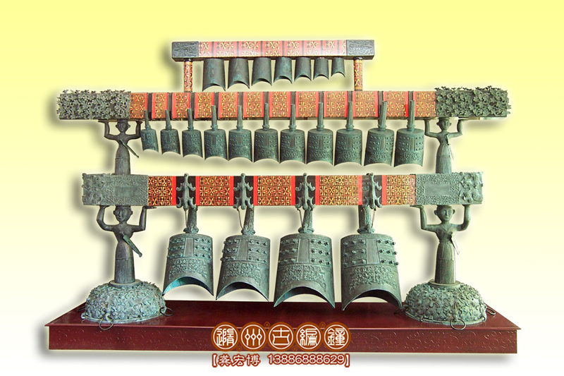 22件A型曾侯乙青銅編鐘演奏型,是我公司董事長、工藝美術(shù)大師王蒲琴女士根據(jù)曾侯乙編鐘設(shè)計(jì)制作,編鐘外形按照聞名世界的曾侯乙編鐘設(shè)計(jì)制作,編鐘及佩劍武士為青銅鑄造,采用國際標(biāo)準(zhǔn)樂音音高A=440Hz調(diào)音,音域五個(gè)八度,可以旋宮轉(zhuǎn)調(diào)演奏古今中外樂曲,編鐘大梁采用優(yōu)質(zhì)松木制作,表面噴漆,彩繪花紋;另配有保管編鐘用的木箱,便于運(yùn)輸和儲(chǔ)存。